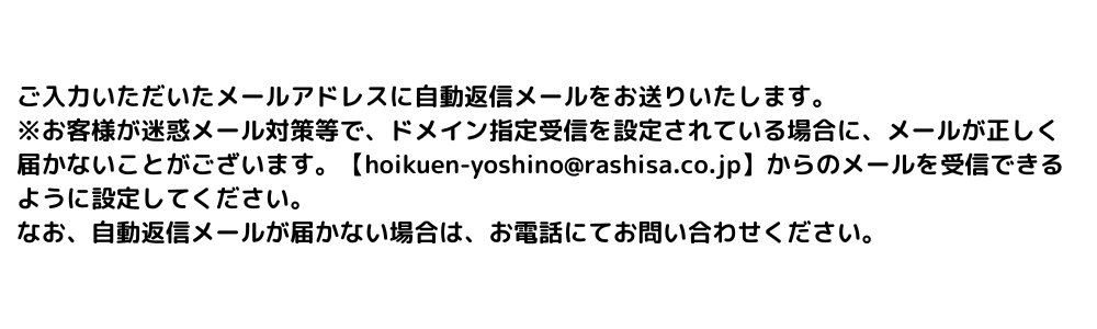 メールでのお問い合わせは下記の入力フォームに必須事項をご入力のうえ、送信してください。